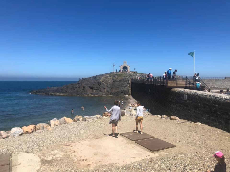 Nous avons eu de la chance, c’était un beau week-end, il y avait du monde, mais pas non plus trop de monde. Juste ce qu’il fallait. Nous ne le savions pas, mais c’était le week-end de la fête des anchois. Alors il y avait plein de marchés tout au long du week-end, et des tas de petits animations musicales très sympathiques, les pieds dans l’eau, le ciel aux couleurs orangées de la fin de journée.