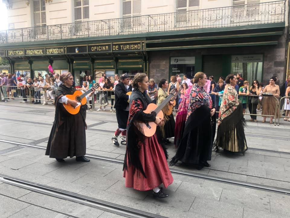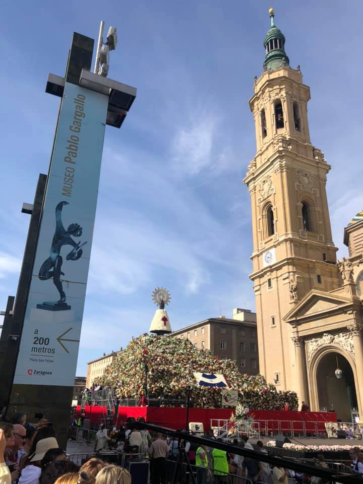 Je ne m’attendais pas du tout à cela, mais étonnamment, la Feria de Saragosse est très chrétienne. Il y avait cette procession d’offrandes de fleurs à apporter à la vierge du Pilar qui dure littéralement toute la journée. Ils sont certainement des milliers à défiler avec des costumes régionaux dans les rues de Saragosse, avec des fleurs à déposer devant leur sainte patronne, sur la place de la basilique. Le lendemain, c’est la même chose, avec cette fois des offrandes de fruits. C’est vraiment très beau à voir, et certaines personnes viennent de très très loin pour assister à ce beau spectacle, croyants ou non. C’est festif, animé, vivant, il y a de la musique, et j’ai d’ailleurs découvert le Salve Rociera, cette chanson qui m’a donné des frissons et que je vous invite vraiment à écouter pour le rythme et la force qu’elle dégage.